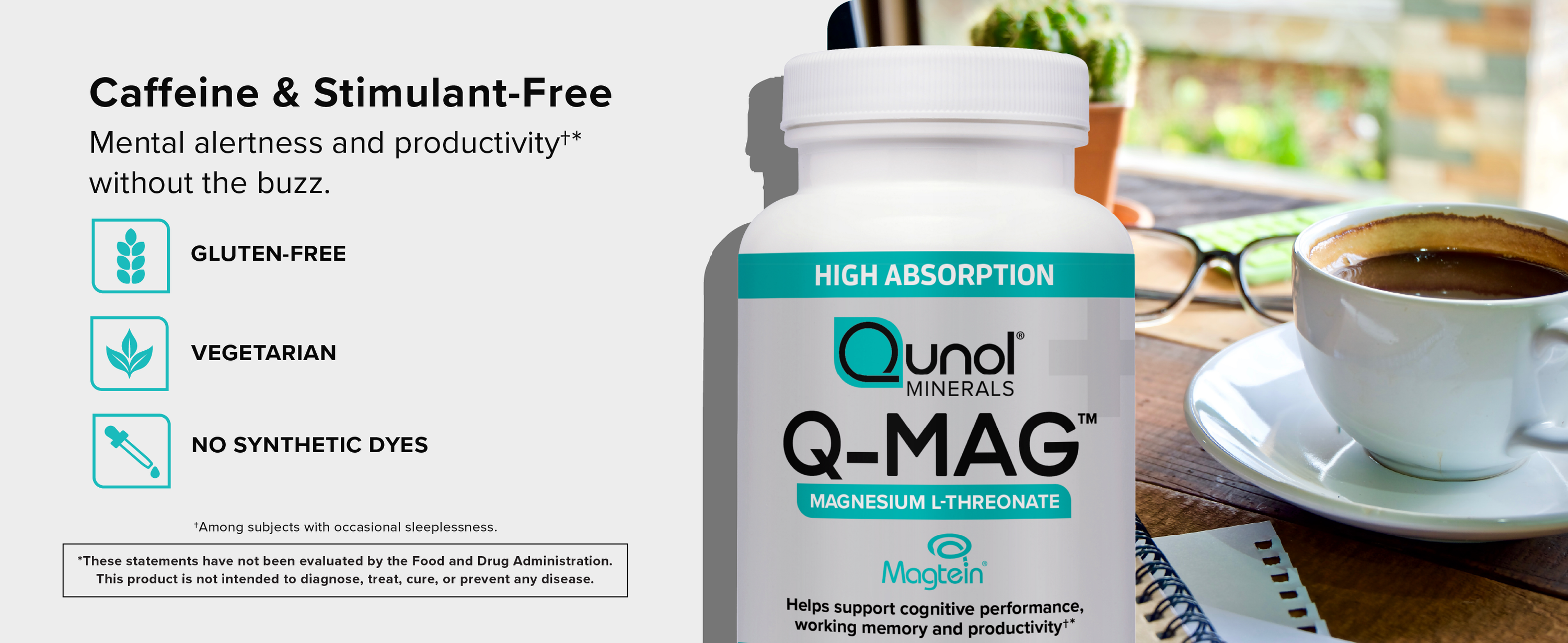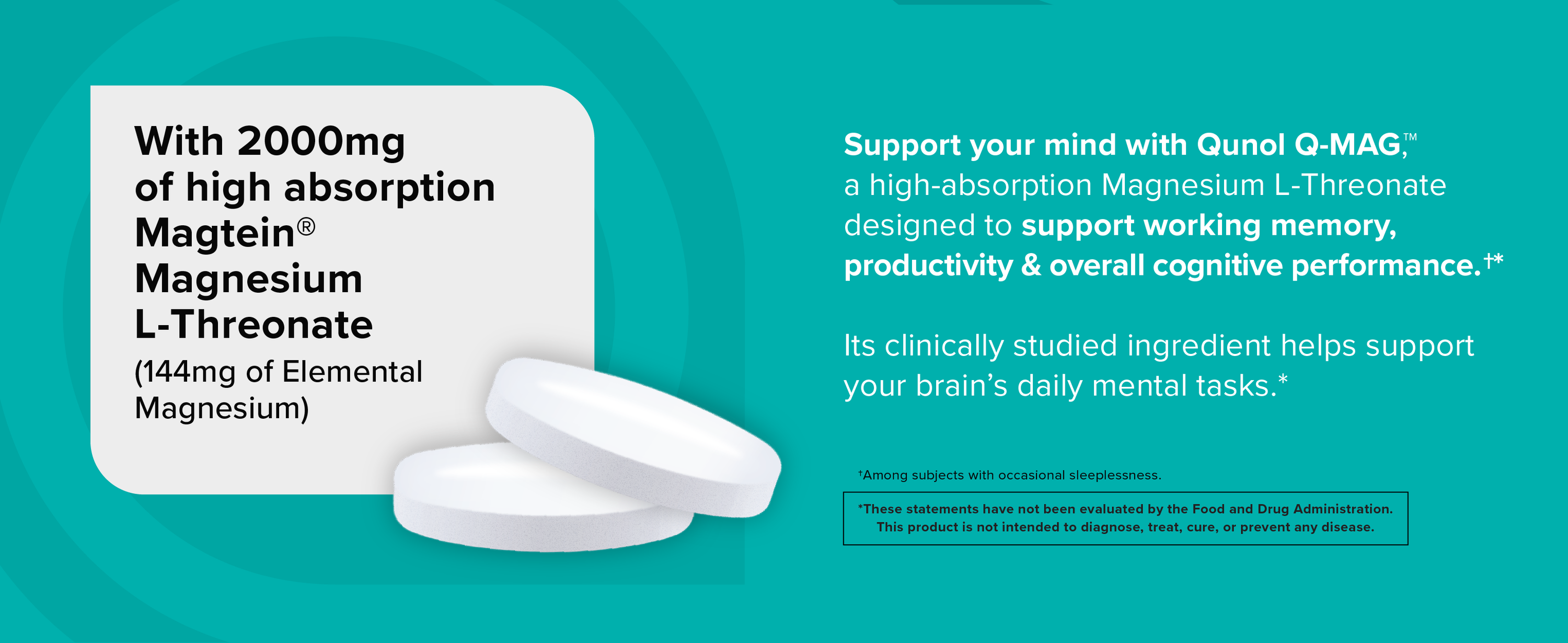 - 2000MG OF MAGTEIN MAGNESIUM L-THREONATE PROVIDING 144MG OF ELEMENTAL MAGNESIUM: Qunol Q-Mag features Magnesium L-Threonate, a clinically studied ingredient shown to help improve mental alertness and productivity*